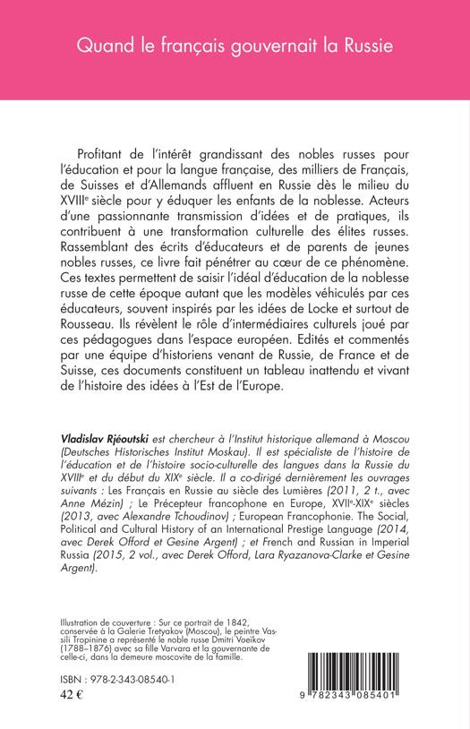 Profitant de l’intérêt grandissant des nobles russes pour l’éducation et pour la langue française, des milliers de Français, de Suisses et d’Allemands affluent en Russie dès le milieu du XVIIIe siècle pour y éduquer les enfants de la noblesse. Acteurs d’une passionnante transmission d’idées et de pratiques, ils contribuent à une transformation culturelle des élites russes. Rassemblant des écrits d’éducateurs et de parents de jeunes nobles russes, ce livre fait pénétrer au coeur de ce phénomène. Ces documents constituent un tableau inattendu et vivant de l’histoire des idées à l’Est de l’Europe.