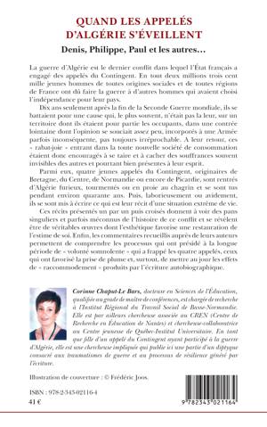 La guerre d'Algérie est le dernier conflit dans lequel l'Etat français a engagé des appelés du Contingent. Parmi eux, 4 jeunes, rentrés furieux, tourmentés, en proie au chagrin, se sont tus pendant 40 ans avant d'écrire leur récit. Ces récits présentés un à un puis croisés donnent à voir des pans singuliers et parfois méconnus de ce conflit. Les commentaires recueillis auprès de leurs auteurs permettent de comprendre la longue période de silence puis le processus de résilience généré par l'écriture.