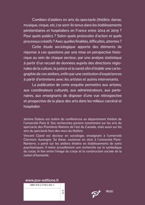 Cette étude sociologique contextualise ces questions par une mise en perspective historique au sein de chaque secteur : réalisation d’entretien avec les intervenants et recueil de données auprès des directions régionales de la culture, la justice et la santé afin d’établir une cartographie de ces ateliers. Une enquête qui vient combler un manque et qui permettra aux artistes, aux coordinateurs culturels, aux administrateurs, aux partenaires, aux enseignants de parcours spécialisés de disposer d’une vue rétrospective et prospective de la place des arts dans les milieux carcéral et hospitalier.