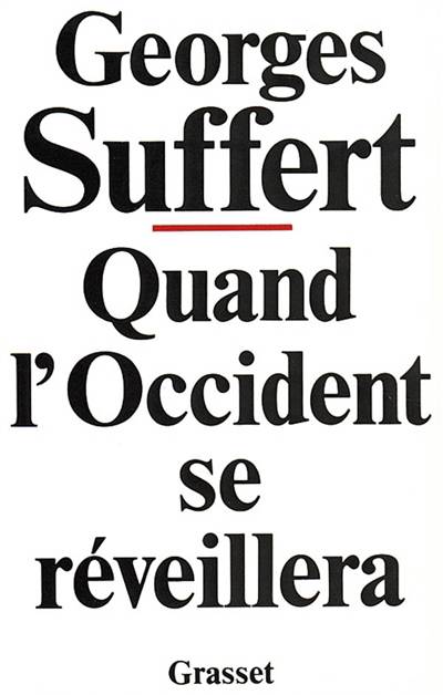 Avec {Quand l'Occident se réveillera} Georges Suffert s'insurge contre tous les pessimistes qui annoncent la troisième guerre mondiale, la défaite de l'Occident, la fin de notre société. Oui, dit-il, nous allons vivre, pendant quatre ou cinq ans encore une période dangereuse, et cela pour trois raisons: 1) la puissance militaire de l'URSS bien supérieure à celle des USA; 2) la faiblesse politique des Etats-Unis qui ne semblent plus avoir de stratégie; 3) le couple explosif et infernal des dollars et du pétrole. Et nous avons tellement peur que nous ne voyons pas les signes d'une nouvelle renaissance: l'URSS, en réalité, n'apparaît plus que comme un empire bureaucratique suranné et vétuste. A cause de la terreur répandue par les dictatures, nous avons réinventé les Droits de l'homme, une morale universelle de la survie. Et, du coup, nos bonnes vieilles démocraties redeviennent des modèles, régimes de tolérance où l'on peut parler, se déplacer, écrire, vivre et mourir relativement en paix.