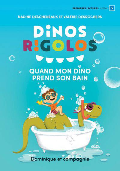 Quand mon dino prend son bain, c’est toute une aventure ! Il a besoin d’une grande SERVIETTE. Il aime beaucoup les BULLES et apporte ses JOUETS. Crois-tu qu’il est comme toi ?