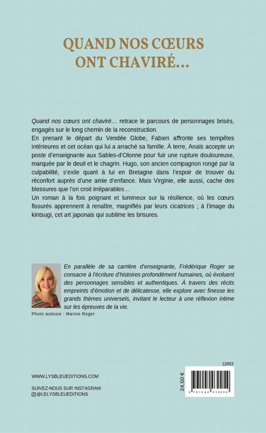Quand nos coeurs ont chaviré... retrace le parcours de personnages brisés, engagés sur le long chemin de la reconstruction. En prenant le départ du Vendée Globe, Fabien affronte ses tempêtes intérieures et cet océan qui lui a arraché sa famille. À terre, Anaïs accepte un poste d'enseignante aux Sables-d'Olonne pour fuir une rupture douloureuse, marquée par le deuil et le chagrin. Hugo, son ancien compagnon rongé par la culpabilité, s'exile quant à lui en Bretagne dans l'espoir de trouver du réconfort auprès d'une amie d'enfance. Mais Virginie, elle aussi, cache des blessures que l'on croit irréparables... Un roman à la fois poignant et lumineux sur la résilience, où les coeurs fissurés apprennent à renaître, magnifiés par leurs cicatrices ; à l'image du kintsugi, cet art japonais qui sublime les brisures.