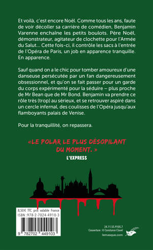 Et voilà, c’est encore Noël. Comme tous les ans, faute de voir décoller sa carrière de comédien, Benjamin Varenne enchaîne les petits boulots. Père Noël, démonstrateur, agitateur de clochette pour l’Armée du Salut… Cette fois-ci, il contrôle les sacs à l’entrée de l’Opéra de Paris, un job en apparence tranquille.