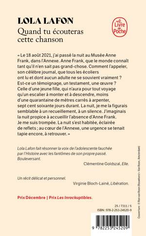 Lola Lafon fait résonner la voix de l’adolescente fauchée par l’Histoire avec les fantômes de son propre passé. Bouleversant. Clémentine Goldszal, Elle.