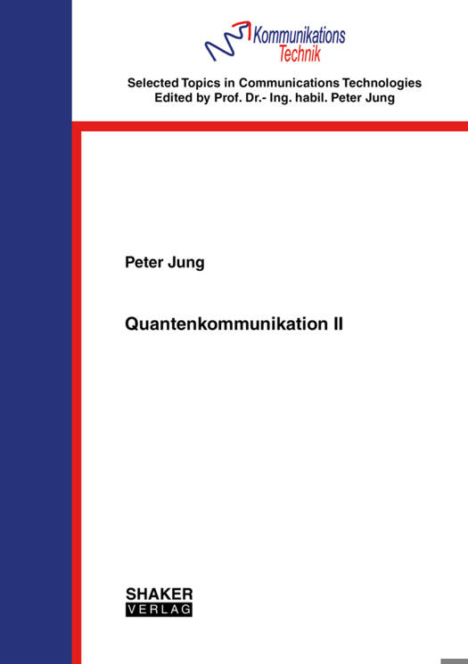 Folgende Themen werden betrachtet:OPERATORENSUMMENDARSTELLUNG NACH KRAUSSpektraldarstellung hermitescher Operatoren; Eigenwertzerlegung (Hauptachsentransformation); Eigenvektoren des Hamiltonoperators; Vertauschbarkeit bei gleichen Eigenvektoren; Kraus-Darstellung (Operatorensummendarstellung); Quantenoperationen bei Wechselwirkung mit der Umgebung; Operatorensummendarstellung der Wechselwirkung mit der Umgebung; Physikalische Interpretation der Operatorensummendarstellung; Anwendung auf ausgewählte Quantenkanäle für QubitsQUANTENKOMMUNIKATIONSSYSTEMBlockschaltbild; klassische Informationsquelle; "Sender Alice"; Quantenkanal; "Empfänger Bob"; Wahrscheinlichkeiten bei der Übertragung; Detektionswahrscheinlichkeit und Fehlerwahrscheinlichkeit; Optimale Quantendetektoren; Bayes-Quantendetektor; Maximum A-posteriori (MAP)-Quantendetektor; Maximum-Likelihood (ML)-QuantendetektorSYSTEMBEISPIELEBayes-Quantendetektor für kommensurable quantenmechanische Dichteoperatoren; Bayes-Quantendetektor für reine Zustände; MAP-Quantendetektor für reine Zustände; MAP-Quantendetektor für reine symmetrische Zustände; infinitesimaler Rotationsgenerator; binäre Informationsübertragung mit einem Qubit; Helstrom-Schranke der binären Informationsübertragung; binäre Amplitudenumtastung (On-Off-Keying, OOK); binäre Phasenumtastung (Binary Phase Shift Keying, BPSK); Quadratwurzelmessung (SRM) bei reinen Zuständen; Quadratwurzelmessung (SRM) bei reinen symmetrischen Zuständen); nahezu optimaler Quantendetektor für reine symmetrische Zustände (|Vd|-äre Phasenumtastung mit SRM, |Vd|-äre Quadraturamplitudenmodulation mit SRM); ML-Quantendetektor für binäre Quantenkommunikationssysteme mit thermisch verursachtem Hintergrundrauschen (binäre Amplitudenumtastung, binäre Phasenumtastung)
