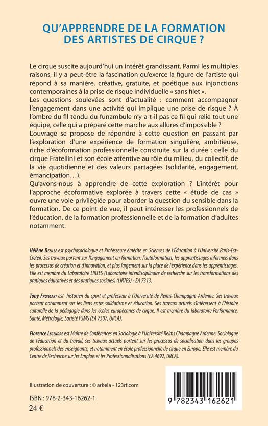 Le cirque suscite aujourd'hui un intérêt grandissant. Les questions soulevées sont d'actualité : comment accompagner l'engagement dans une activité qui implique une prise de risque ? À l'ombre du fil tendu du funambule, n'y a-t-il pas ce fil qui relie tout une équipe, celle qui a préparé cette marche aux allures d'impossible ? L'ouvrage se propose de répondre à cette question en passant par l'exploration d'une expérience de formation singulière, ambitieuse, riche d'écoformation professionnelle construite sur la durée : celle du cirque Fratellini et son école attentive au rôle du milieu, du collectif, de la vie quotidienne et des valeurs partagées (solidarité, engagement, émancipation).