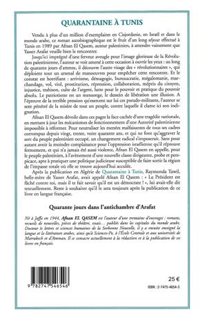 Vendu à plus d'un million d'exemplaires en Cisjordanie, en Israël et dans le monde arabe, ce roman autobiographique est le fruit d'un long séjour effectué à Tunis en 1989 par Afnan El Qasem, auteur palestinien, à attendre vainement que Yasser Arafat veuille bien le rencontrer. Jusqu'ici imprégné d'une ferveur aveugle pour l'image glorieuse de la Révolution palestinienne, l'auteur se voit amené à cette occasion à ouvrir les yeux : au long de quarante jours d'attente, il découvre l'autre visage des "révolutionnaires"...
