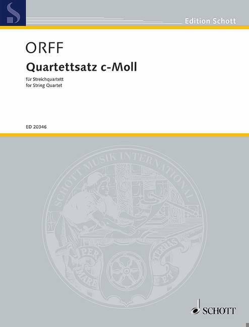 Like the Quartettsatz of 1914 (ED 7816), Quartettsatz in c-Moll of 1921, premièred by the Henschel Quartet at the Orff Centre in Munich in 2007, testifies to Orff’s early struggles towards the classical-Romantic tradition. Originally left unfinished as a fragment in C sharp minor, the first version has now been reconstructed (in C minor) from a source that only survived as a copy with autograph corrections. It is interesting to see a new tonal language appearing quite suddenly (and notated without bar lines in the first version) in the coda. Instrumentation: string quartet