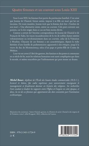 Sous Louis XIII, les femmes font partie du patrimoine familial. Pour échapper à l'autorité de leur futur mari, une alternative existe, entrer au couvent. A partir d'extraits de la correspondance de Jeanne de Chantal et François de Sales, l'auteur nous dévoile les traces incandescentes de la vie de nobles dames entrées volontairement ou involontairement dans un couvent.