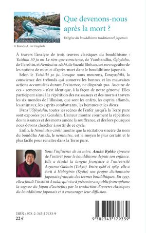 À travers l'analyse de trois oeuvres classiques, cet ouvrage aborde les notions de mort et d'après-mort dans le bouddhisme japonais. Selon le Yuishiki 30 ju, lorsque nous mourons, l'arayashiki, la conscience des tréfonds qui conserve les bonnes et les mauvaises actions accumulées durant l'existence, ne disparaît pas. Aucune de ces « semences » n'est identique, elles participent à la répétition des naissances et des morts à travers les six mondes de l'illusion. Dans l'Ôjôyôshu, toutes les scènes de l'enfer jusqu'à la Terre pure sont exposées par Genshin. L'auteur montre comment la répétition des naissances et des morts amène la souffrance, et pourquoi nous devons chercher à sortir de ce cycle. Enfin, le Nembutsu-zôshi montre que la récitation sincère du nom du bouddha Amida est le meilleur moyen pour renaître dans la Terre pure.