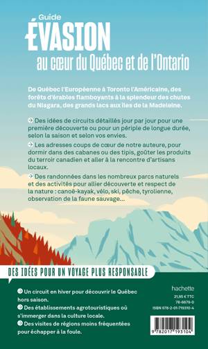 voyage authentique et dépayasant, de Montréal à la Pointe de la Gaspésie, en passant par la ville de Québec, les rives du Saint-Laurent, le Charlevoix, la lac Saint-Jean, sans oublier des