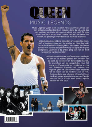 Music Legends Queen toont en vertelt het waanzinnige verhaal van een fantastisch getalenteerde en populaire band die tot op de dag van vandaag wereldwijd een enorme schare fans heeft. Dit boek is een terechte ode aan deze iconische band en haar leden, hun muziek, de geweldige concerten en de muzikale diversiteit. Het boek, rijkelijk gevuld met bijzondere en persoonlijke foto’s, geeft je toegang tot één van de grootste en beste live rockbands die de wereld ooit heeft gekend. Het succes van Queen spreekt voor zich met een platenverkoop van bijna 300 miljoen exemplaren. Daarmee is de Britse groep één van de best verkopende bands aller tijden. Het fascinerende verhaal van Queen wordt van begin tot eind uit de doeken gedaan. Het ontstaan van de band, de successen en de keerzijde daarvan, de levensloop van de groepsleden, Live Aid enzovoort. En natuurlijk het ongekende succes van Bohemian Rapsody, het nummer dat eigenlijk geen hit kon worden maar uitgroeide tot hét icoon van de moderne pop en rock. Extra aandacht gaat uiteraard uit naar het leven van frontman en legendarische zanger Freddie Mercury. Zet je schrap, want Music Legends Queen ‘will rock you’!