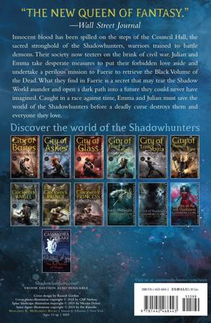 Dark secrets and forbidden love threaten the very survival of the Shadowhunters in Cassandra Clare's Queen of Air and Darkness, the final novel in the New York Times and USA TODAY bestselling The Dark Artifices trilogy. Queen of Air and Darkness is a Shadowhunters novel.What if damnation is the price of true love? Innocent blood has been spilled on the steps of the Council Hall, the sacred stronghold of the Shadowhunters. Their society now teeters on the brink of civil war. One fragment of the Blackthorn family flees to Los Angeles, seeking to discover the source of the disease that is destroying the race of warlocks. Meanwhile, Julian and Emma take desperate measures to put their forbidden love aside and undertake a perilous mission to Faerie to retrieve the Black Volume of the Dead. What they find there is a secret that may tear the Shadow World asunder and open a dark path into a future they could never have imagined. Caught in a race against time, Emma and Julian must save the world of the Shadowhunters before a deadly curse destroys them and everyone they love.