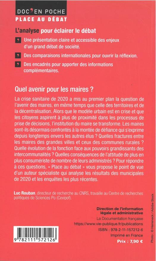 En s’appuyant sur les résultats des municipales et les données exclusives du Cevipof (Centre de recherches sur la vie politique en France de Sciences Po Paris), l’auteur souligne le double mouvement contradictoire que subissent les maires, à la fois de hiérarchisation accrue des collectivités locales (communes et structures intercommunales, départements, régions) et de demande de proximité de la part de leurs administrés. Il revient sur la construction historique de la figure du maire, sur les logiques politiques des élections municipales (nationalisation des questions en débat), sur le profil sociologique des maires, sur la relation des Français à leurs maires (confiance et démocratie locale) et sur les raisons profondes de la crise."