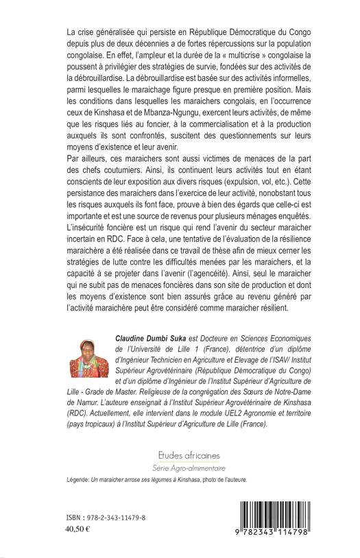 L'ampleur et la durée de la crise généralisée qui persiste en République démocratique du Congo depuis plus de deux décennies poussent la population à privilégier des stratégies de survie, fondées sur des activités de la débrouillardise. Celle-ci est basée sur des activités informelles, parmi lesquelles le maraichage figure presque en première position. Mais les conditions dans lesquelles les maraichers congolais exercent leurs activités, de même que les risques liés au foncier, à la commercialisation et à la production auxquels ils sont confrontés, suscitent des questionnements sur leurs moyens d'existence et leur avenir.