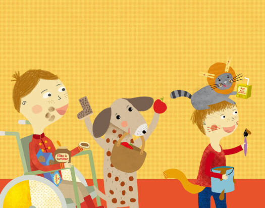 Lucas et Gabriel sont deux frères, l'aîné est en fauteuil roulant, cela ne l'empêche de faire des bêtises, On suit les aventures de Lucas avec son frère et son chien Happy, car ces deux là ont beaucoup d'imagination. Le thème du handicap est abordé avec humour, pour les petits, à partir de 3 ans et l'on oublie que l'un des deux est en fauteuil