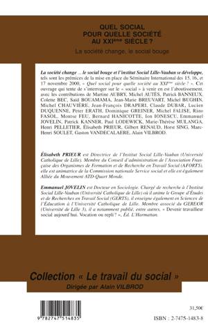 La manière de penser le social, de l'exprimer et de le vivre a considérablement évolué. Cette évolution est caractérisée par plusieurs phénomènes dont la professionnalisation, donnant vocation à un corps particulier d'intervenir dans le domaine social. Les auteurs s'interrogent sur différents points : Ne s'agit-il pas de penser (panser) autrement le social au XXIe siècle ? Mais penser autrement le social peut renvoyer à l'échec de l'existant, or qu'en est-il ? Quelle place citoyenne les travailleurs sociaux comptent-ils laisser aux publics en souffrance ? A quoi sert le travail social ?