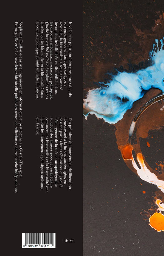 Rarement reconnue et pourtant bien présente : depuis son émergence en tant que catégorie sexuelle, la bisexualité a tour à tour été invoquée, invisibilisée et discréditée dans les discours médicaux, sociaux et politiques. Quelle bisexualité radicale ? explore les traces laissées par les bisexuel·les et la bisexualité dans le contexte politique et militant radical français. Des prémices du mouvement de libération homosexuel à la fin des années 1960, en passant par les luttes féministes et jusqu'à l'émergence du milieu transpédégouine au début des années 2000, cet essai éclaire comment les bisexuel·les et la bisexualité ont habité les mouvements politiques radicaux en France.