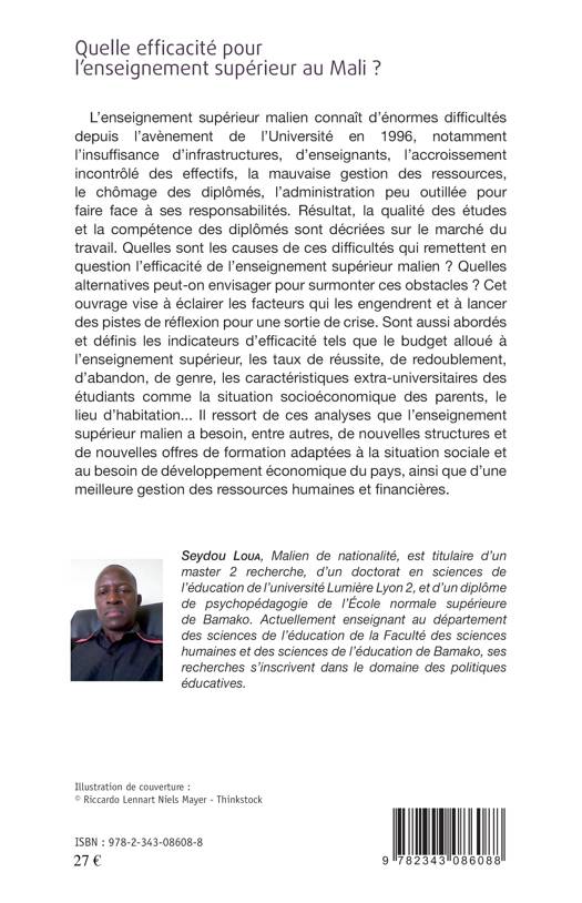L'enseignement supérieur malien connaît d'énormes difficultés depuis l'avènement de l'Université en 1996, notamment l'insuffisance d'infrastructures, d'enseignants, l'accroissement incontrôlé des effectifs, la mauvaise gestion des ressources, le chômage des diplômés, l'administration peu outillée pour faire face à ses responsabilités. Quelles alternatives peut-on envisager pour surmonter les obstacles ? Cet ouvrage vise à éclairer les facteurs qui les engendrent et à lancer des pistes de réflexion pour une sortie de crise.