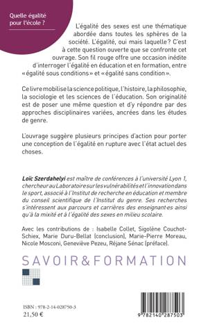 L'égalité des sexes est une thématique abordée dans toutes les sphères de la société. L'égalité, oui mais laquelle ? C'est à cette question ouverte que se confronte cet ouvrage. Son fil rouge offre une occasion inédite d'interroger l'égalité en éducation et en formation, entre " égalité sous conditions" et "égalité sans condition".