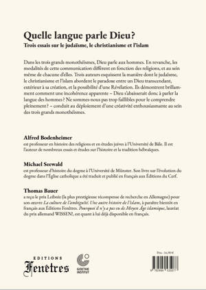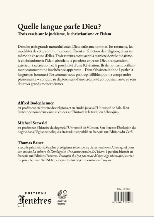 Dans les trois grands monothéismes, Dieu parle aux hommes. En revanche, les modalités de cette communication diffèrent en fonction des religions et au sein même de chacune d’elles. Trois auteurs esquissent la manière dont le judaïsme, le christianisme et l’islam abordent le paradoxe entre un Dieu transcendant, extérieur à sa création, et la possibilité d’une révélation. Ils démontrent brillamment comment une incohérence apparente – Dieu s’abaisserait donc à parler la langue des hommes ? Ne sommes nous pas trop faillibles pour le comprendre pleinement ? Citant en parallèle la Torah, la Bible et le Coran, ils démontrent brillamment comment une incohérence apparente conduit au déploiement d’une créativité enthousiasmante au sein des trois monothéismes.