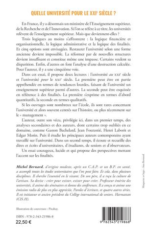 En France, il y a désormais un ministère de l’Enseignement supérieur, de la Recherche et de l’Innovation. Les universités relèveraient donc de l’enseignement supérieur. Mais que deviennent-elles ? Trois logiques au moins s’affrontent : la logique financière et organisationnelle, la logique administrative et la logique des finalités. Quelles sont nos options ? Restaurer l’université selon une forme ancienne devient impossible. La réformer devient insuffisant, c’est même une impasse. Certains veulent sa disparition. Enfin, d’autres craignent une destruction calculée. Pour l’auteur, il y a une cinquième voie. Dans cet ouvrage, il propose deux lectures : l’université au XXIe siècle et l’université pour le XXIe siècle. Cette seconde voie s’esquisse en référence à des finalités et en termes qualitatifs. La réflexion passe par Bachelard, Fourastié, Laborit et Edgar Morin, mais se met aussi à l’écoute des universitaires, étudiants, seniors et observateurs.