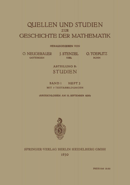 5. Quellen Und Studien Zur Geschichte Der Mathematik
