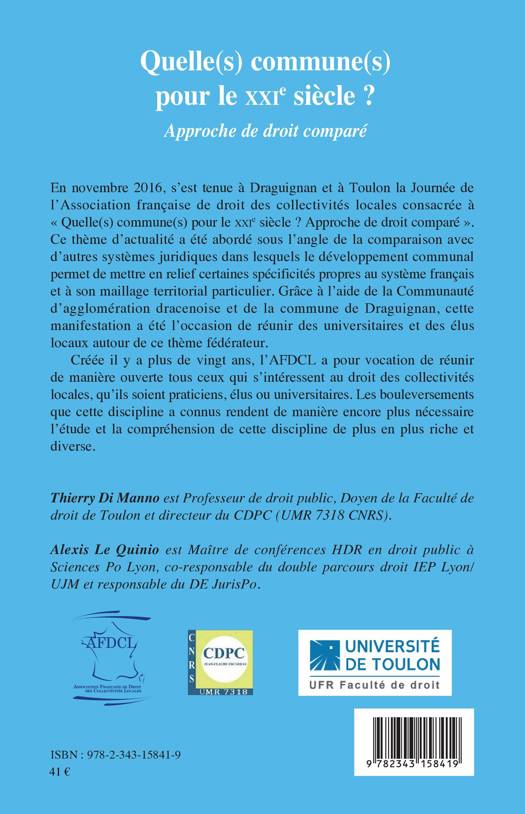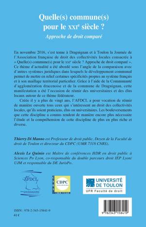 Créée il y a plus de vingt ans, l'Association française de droit des collectivités locales a pour vocation de réunir de manière ouverte tous ceux qui s'intéressent au droit des collectivités locales, qu'ils soient praticiens, élus ou universitaires. Les bouleversements que cette discipline a connu rendent de manière encore plus nécessaire l'étude et la compréhension de cette discipline de plus en plus riche et diverse. Cet ouvrage reprend la journée d'étude de 2016 comparant différents systèmes juridiques, dont le système français.