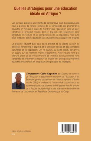 Cet ouvrage présente une méthode comparative quali-quantitative, qui permet de rendre compte de la complexité des phénomènes éducatifs en Afrique. Il s'agit de montrer que l'éducation dans un pays constitue le principal moyen dont il dispose, non seulement pour perpétuer les valeurs et les compétences de sa population, mais aussi pour préparer cette population aux changements qu'appelle le progrès.
