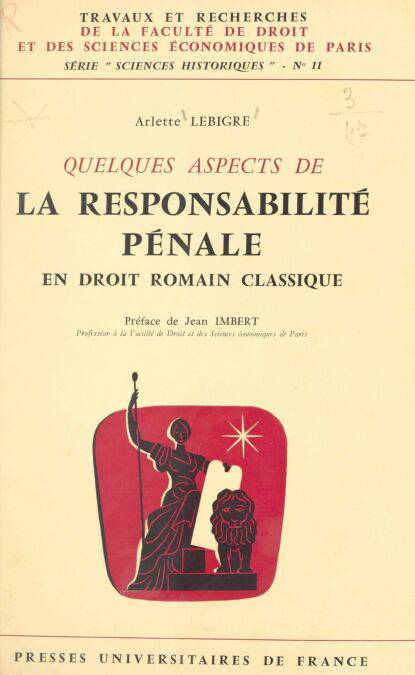 Quelques aspects de la responsabilité pénale en droit romain classique E-BOOK