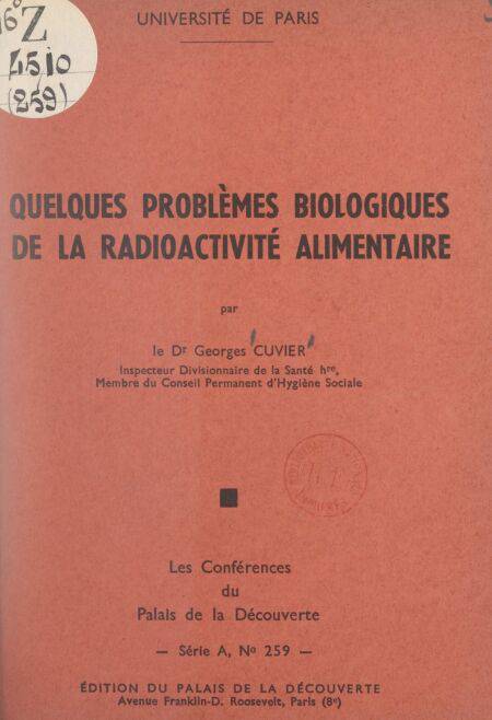 Quelques problèmes biologiques de la radioactivité alimentaire E-BOOK