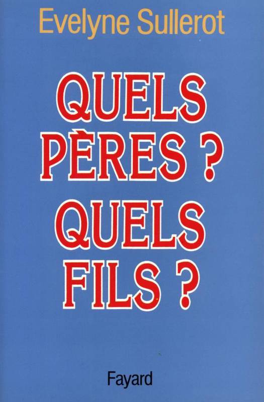 Ici avocate chaleureuse des pères, Evelyne Sullerot, sociologue, est surtout connue pour ce qu'elle a fait pour les femmes, en France (fondatrice du Planning familial, fondatrice des centres RETRAVAILLER) et en Europe (chargée par la CEE de promouvoir l'égalité des chances dans les douze pays) et par ses nombreux livres sur les problèmes féminins, traduits dans le monde entier. Membre du Conseil économique et social pendant quinze ans, elle a beaucoup étudié la démographie, la famille et la politique sociale.