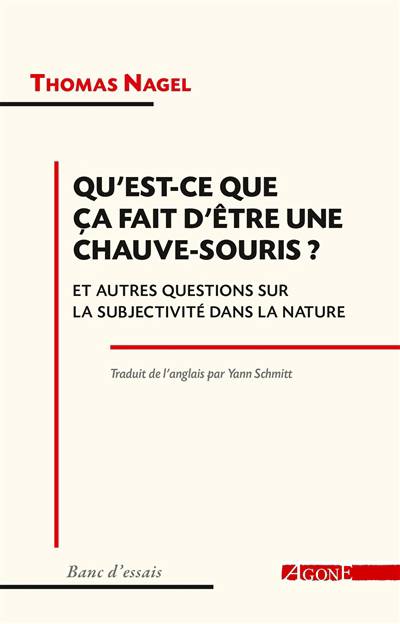 Paru en 1974, cet essai est devenu un classique aussi bien de la philosophie que de la psychologie et des neurosciences. Nagel y analyse l’impossibilité d’expliquer objectivement la conscience et l’expérience subjective. Pour le montrer, il s’appuie sur notre incapacité à nous représenter le vécu des chauves souris qui se déplacent grâce à l’écholocation. Les sciences font donc face à une limite majeure : la subjectivité vécue humaine ou animale. Et l’éthique doit aussi tenir compte de cette sensibilité animale, qui oscille entre plaisir et douleur. En généralisant, Nagel s’interroge alors sur notre compréhension de l’univers, entre perspective scientifique et perspective subjective. Pour cela, il propose des pistes de recherche sur le lien entre la matière et l’esprit conscient.