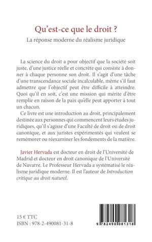 Le droit doit être conforme à la nature des choses. Ce livre est une introduction au droit, principalement destinée à des étudiants en sciences juridiques qui souhaitent appréhender les fondements du droit. La science du droit souhaite que la société soit juste afin qu'elle puisse donner à chacun ce qui est juste. La tâche est difficile mais mérite qu'on s'y attarde car seule l'objectivité des faits est capable d'apaiser les esprits.