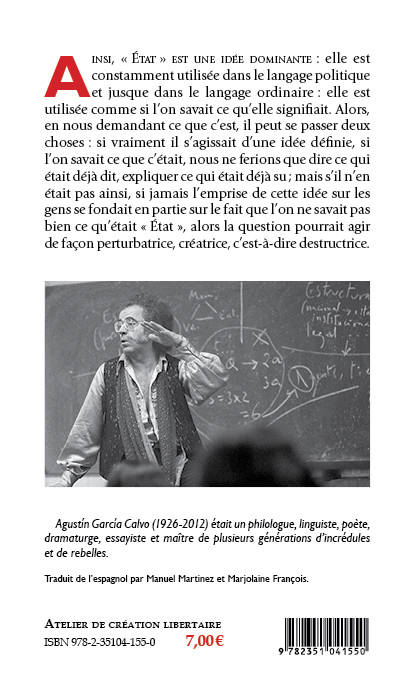 Ainsi, « État » est une idée dominante : elle est constamment utilisée dans le langage politique et jusque dans le langage ordinaire : elle est utilisée comme si l’on savait ce qu’elle signifiait. Alors, en nous demandant ce que c’est, il peut se passer deux choses : si vraiment il s’agissait d’une idée définie, si l’on savait ce que c’était, nous ne ferions que dire ce qui était déjà dit, expliquer ce qui était déjà su ; mais s’il n’en était pas ainsi, si jamais l’emprise de cette idée sur les gens se fondait en partie sur le fait que l’on ne savait pas bien ce qu’était « État », alors la question pourrait agir de façon perturbatrice, créatrice, c’est-à-dire destructrice.
