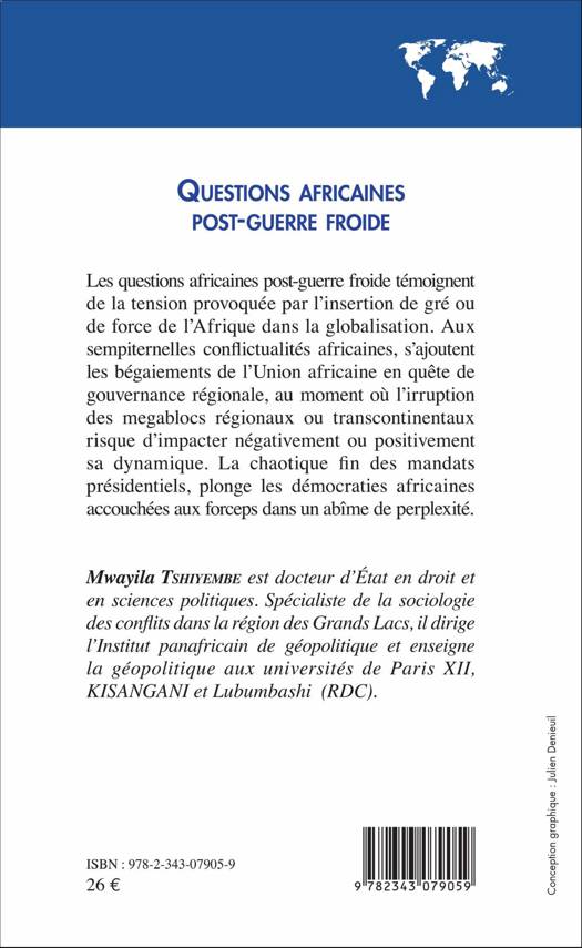 Les questions africaines post-guerre froide témoignent de la tension provoquée par l'insertion de gré ou de force de l'Afrique dans la globalisation. Aux sempiternelles conflictualités africaines, s'ajoutent les bégaiements de l'Union africaine en quête de gouvernance régionale, au moment où l'irruption des megablocs régionaux ou transcontinentaux risque d'impacter négativement ou positivement sa dynamique. La chaotique fin des mandats présidentiels plonge les démocraties africaines accouchées au forceps dans un abîme de perplexité.
