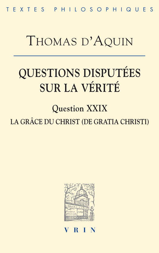 Au terme de la serie des questions disputees De la verite, Thomas montre dans la grace du Christ le moyen universel de la communication de la vie divine aux creatures spirituelles. Le premier et pour la premiere fois, grace a un instrument philosophique acere, il elimine les obstacles qui avaient empeche la plupart des Peres latins et tous ses predecesseurs immediats de mettre en pleine lumiere le role de l'humanite de Jesus et de ses mysteres dans le don effectif de la grace qu'il nous a meritee. Malgre un vocabulaire parfois archaique et quelques hesitations, il s'agit d'une etape capitale dans l'evolution de l'Aquinate et dans l'histoire de la christologie: Du fait que le Christ influe d'une certaine maniere les effets des graces sur toutes les creatures raisonnables, il est luimeme, d'une certaine maniere, principe de toute grace selon son humanite, comme Dieu est principe de tout etre.