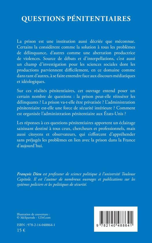 La prison est une institution aussi décriée que méconnue. Certains la considèrent comme la solution à tous les problèmes de délinquance, d'autres comme une aberration productrice de violences. Source de débats et d'interpellations, c'est aussi un champ d'investigation pour les sciences sociales dont les productions parviennent difficilement, en ce domaine comme dans tant d'autres, à se faire entendre face aux discours médiatiques et idéologiques. Sur ces réalités pénitentiaires, cet ouvrage entend poser un certain nombre de questions : la prison peut-elle réinsérer les délinquants ? La prison va-t-elle être privatisée ? L'administration pénitentiaire est-elle une force de sécurité intérieure ? Comment est organisée l'administration pénitentiaire aux États-Unis ? Les réponses à ces questions pénitentiaires apportent un éclairage saisissant destiné à tous ceux, chercheurs et professionnels, mais aussi citoyens et observateurs, qui s'efforcent d'appréhender sans préjugés les problèmes en lien avec la prison dans la France d'aujourd'hui.