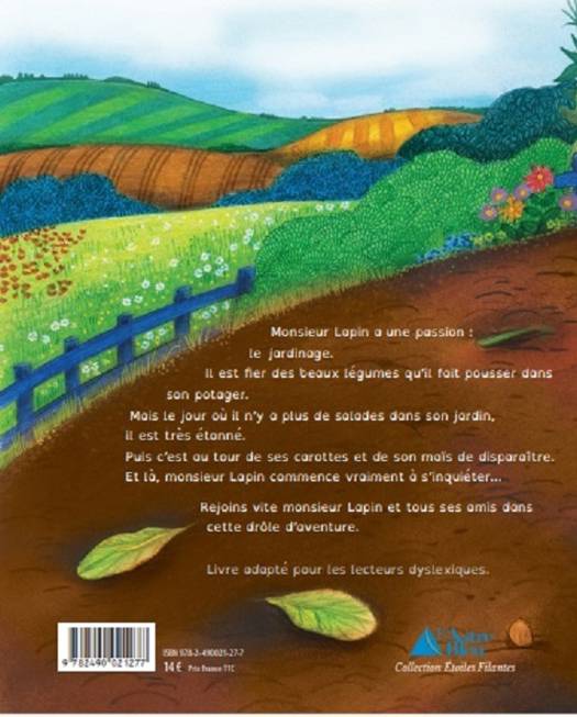 Monsieur Lapin a une passion : le jardinage. Il est fier des beaux légumes qu’il fait pousser dans son potager. Mais le jour où il n’y a plus de salades dans son jardin, il est très éton-né. Puis c’est au tour de ses carottes et de son maïs de disparaître. Et là, monsieur Lapin commence vraiment à s’inquiéter…