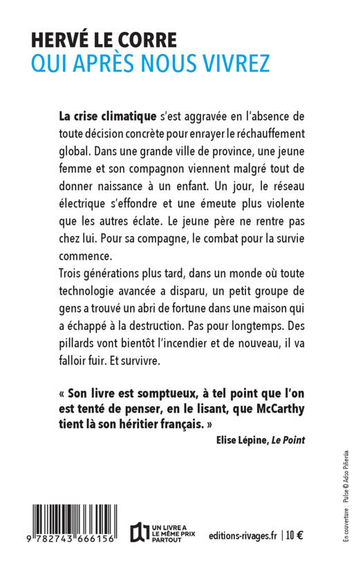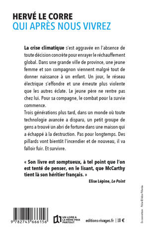 A la fin du XXIe siècle, dans une grande ville de province, une jeune femme et son compagnon viennent malgré les crises à répétition, de donner naissance à un enfant. Un jour, le réseau électrique français s'effondre et une émeute plus violente que les autres éclate. Le jeune père ne rentre pas chez lui. Pour sa compagne, l'angoisse va grandissant. Trois générations plus tard, dans un monde où toute technologie avancée a disparu, un petit groupe de gens a trouvé un abri de fortune dans une maison campagnarde qui a échappé à la destruction. Pas pour longtemps. Des pillards vont bientôt l'incendier et les survivants vont devoir fuir sur les routes avec leur carriole et leur cheval. Commence une épopée proche du western, où chaque jour l'enjeu est de survivre...