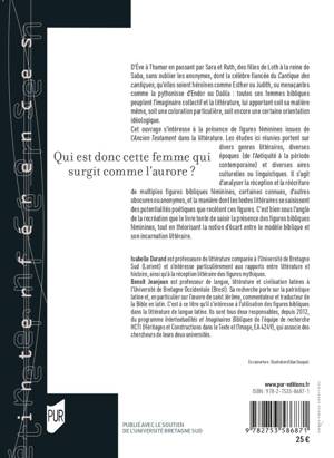 D’Ève à Thamar en passant par Sara et Ruth, des filles de Loth à la reine de Saba, sans oublier les anonymes, dont la célèbre fiancée du Cantique descantiques , qu’elles soient héroïnes comme Esther ou Judith, ou menaçantes comme la pythonisse d’Endor ou Dalila : toutes ces femmes bibliques peuplent l’imaginaire collectif et la littérature, lui apportant soit sa matière même, soit une coloration particulière, soit encore une certaine orientation idéologique.