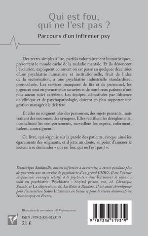 Des textes simples à lire, parfois volontairement humoristiques, présentent le monde caché de la maladie mentale. Et ils dénoncent l'évolution, expliquent comment on est passé en quelques décennies d'une psychiatrie humaniste et institutionnelle, fruit de l'idée de la sectorisation, à une psychiatrie industrielle standardisée, protocolisée. Les services manquent de lits et de personnel, les urgences sont en permanence saturées et de nombreux patients n'ont plus aucun suivi extérieur. Les équipes, démotivées par l'absence de clinique et de psychopathologie, doivent en plus supporter une gestion managériale délétère. Et elles ne soignent plus des personnes, des sujets pensants, mais traitent des neurones, des synapses. Elles rectifient les dérèglements, normalisent les comportements, surveillent les esprits, enferment, isolent, contraignent... Ce livre, qui s'appuie sur la parole des patients, évoque ainsi les égarements des soignants, et il jette un doute, au point d'amener le lecteur à se demander qui est fou, qui ne l'est pas ? .