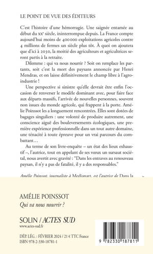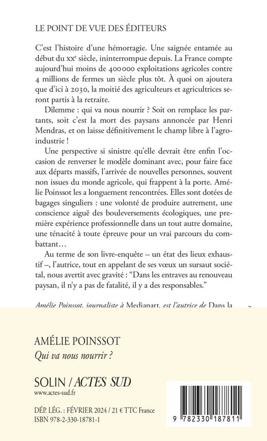 C'est l'histoire d'une hémorragie. Une saignée entamée au début du XXe siècle, ininterrompue depuis. La France compte aujourd'hui moins de 400 000 exploitations agricoles contre 4 millions de fermes un siècle plus tôt. À quoi on ajoutera que d'ici à 2030, la moitié des agriculteurs et agricultrices seront partis à la retraite. Dilemme : qui va nous nourrir ? Soit on remplace les partants, soit c'est la mort des paysans annoncée par Henri Mendras, et on laisse définitivement le champ libre à l'agro-industrie ! Une perspective si sinistre qu'elle devrait être enfin l'occasion de renverser le modèle dominant avec, pour faire face aux départs massifs, l'arrivée de nouvelles personnes, souvent non issues du monde agricole, qui frappent à la porte. Amélie Poinssot les a longuement rencontrées. Elles sont dotées de bagages singuliers : une volonté de produire autrement, une conscience aiguë des bouleversements écologiques, une première expérience professionnelle dans un tout autre domaine, une ténacité à toute épreuve pour un vrai parcours du com battant... Au terme de son livre-enquête - un état des lieux exhaustif -, l'autrice, tout en appelant de ses voeux un sursaut sociétal, nous ave rtit avec gravité : "Dans les entraves au renouveau paysan, il n'y a pas de fatalité, il y a des responsables."