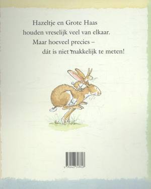 ‘Grote Haas, kom eens hier met je oren. Ik moet je iets héél belangrijks vertellen. Raad eens hoeveel ik van je hou?’ Hazeltje en Grote Haas willen elkaar graag laten zien hoeveel ze van elkaar houden. Telkens als Hazeltje iets bedacht heeft, doet Grote Haas daar nog een schepje bovenop. ‘Raad eens hoeveel ik van je hou’ behoeft geen enkele introductie meer. De manier waarop Hazeltje en Grote Haas proberen uit te leggen hoeveel ze van elkaar houden heeft al miljoenen mensen betoverd. Een prachtig uitgevoerd boek voor iedereen: als geboortecadeautje, Valentijnsgeschenk, voor kinderen, ouders, grootouders, verliefden, geliefden, (geheime) minnaars en al die anderen van wie je zoveel houdt – tot aan de maan en weer terug.