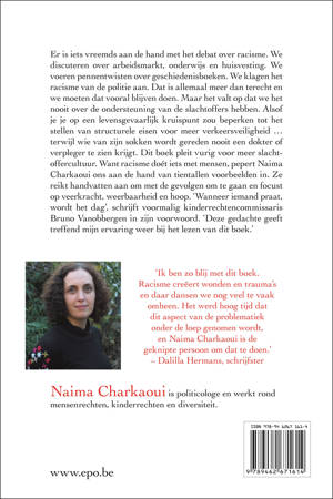 Er is iets vreemds aan de hand met het debat over racisme. We discuteren over arbeidsmarkt, onderwijs en huisvesting. We voeren pennentwisten over geschiedenisboeken. We klagen het racisme van de politie aan. Dat is allemaal meer dan terecht en we moeten dat vooral blijven doen. Maar het valt op dat we het nooit over de ondersteuning van de slachtoffers hebben. Alsof je je op een levensgevaarlijk kruispunt zou beperken tot het stellen van structurele eisen voor meer verkeersveiligheid … terwijl wie van zijn sokken wordt gereden nooit een dokter of verpleger te zien krijgt. Dit boek pleit vurig voor meer slachtoffercultuur. Want racisme doét iets met mensen, pepert Naima Charkaoui ons aan de hand van tientallen voorbeelden in. Ze reikt handvatten aan om met de gevolgen om te gaan en focust op veerkracht, weerbaarheid en hoop. ‘Wanneer iemand praat, wordt het dag’, schrijft uittredend kinderrechtencommissaris Bruno Vanobbergen in zijn voorwoord. ‘Deze gedachte geeft treffend mijn ervaring weer bij het lezen van dit boek.’