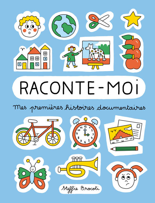 Écrit et dessiné par Steffie Brocoli, " Raconte-moi… " est une alternative ludique et inclusive à la classique mini-encyclopédie. Grâce à un fil-chemin que l’enfant peut suivre du bout du doigt sur une quinzaine d'étapes, il devient, au son de la lecture, un acteur à part entière : il ralentit, accélère, lit les images dessinées. Ainsi, il prend part à la lecture, témoigne de ses expériences, peut comparer avec ce qu’il connait.