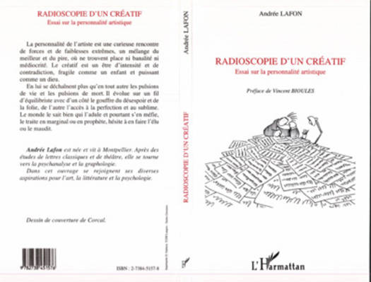 La personnalité de l'artiste est une curieuse rencontre de forces et de faiblesses extrêmes. En lui se déchaînent plus qu'en tout autre les pulsions de vie et de mort. Comme l'oeuvre d'art, l'écriture exprime l'inconscient de son auteur. L'auteur porte son étude sur une centaine d'écritures, à travers trois étapes de la créativité : la naissance de la vocation à travers chacun des stades freudiens (oral, anal, phallique), le phénomène de la sublimation et la constitution du moi ; l'élaboration de l'oeuvre à partir de la réalité extérieure, selon les fonctions jungiennes (sensation, sentiment, intuition) ; la restitution de l'oeuvre au monde, qui fait de l'artiste un être à la fois différent des autres et interprète de tous.