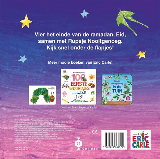 Aan de hand van de prachtige, herkenbare illustraties van Eric Carle maken kinderen kennis met de tradities en gewoontes rondom de periode van ramadan en het ramadanfeest. Het feestelijke flappenboek introduceert op een eenvoudige en speelse manier de vreugde van het geven en het belang van gezellig samenzijn bij kinderen. Rupsje Nooitgenoeg is al meer dan 50 jaar een geliefde klassieker, en dit speciale avontuur is perfect voor kinderen vanaf 2 jaar die op een leuke manier kennis willen maken met culturele diversiteit.