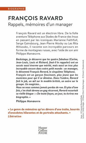 François Ravard est un électron libre. De la folle aventure Téléphone aux Stades de France des Insus en passant par les iconiques Marianne Faithfull, Serge Gainsbourg, Jean-Pierre Mocky ou Les Rita Mitsouko, il raconte son incroyable parcours en forme de montagnes russes, avec l’aide de son ami Philippe Manœuvre.
