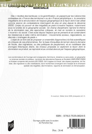 L’objet de ce livre est de proposer un ensemble d’approches à la fois scientifiques et critiques de ces phénomènes. Sur la base d’enquêtes de terrain dans le domaine de l’école, des migrations, ou des politiques de peuplement, et en mobilisant des ancrages théoriques divers, les travaux proposés ici explorent la façon dont la domination se produit, se reproduit et se combat dans et par l’espace géographique.